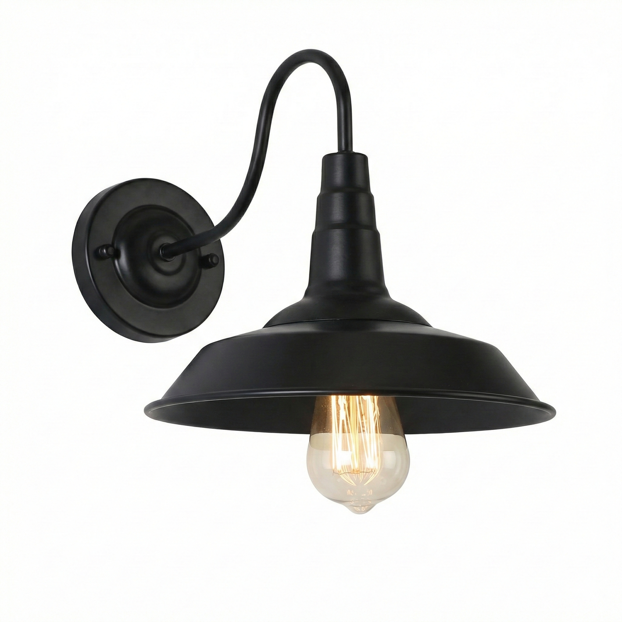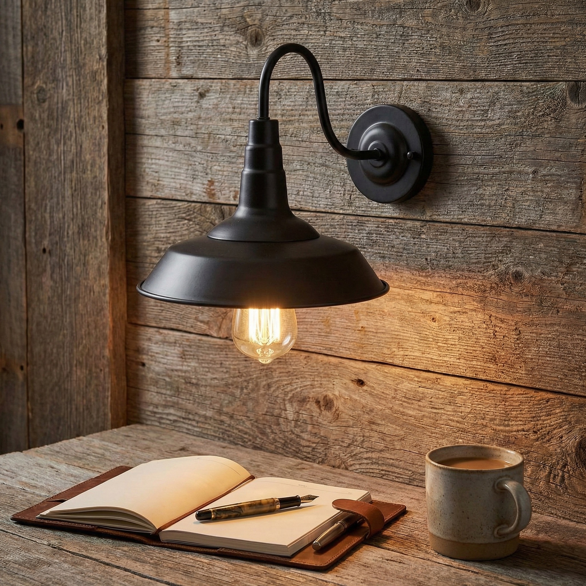 El Aplique “Barn Classic” es la máxima expresión del estilo industrial atemporal, diseñado para aportar carácter y una iluminación focalizada tanto en espacios internos como al aire libre. Este modelo importado destaca por su elegante brazo en cuello de cisne y su amplia pantalla cónica de metal, acabada íntegramente en un sofisticado negro mate.