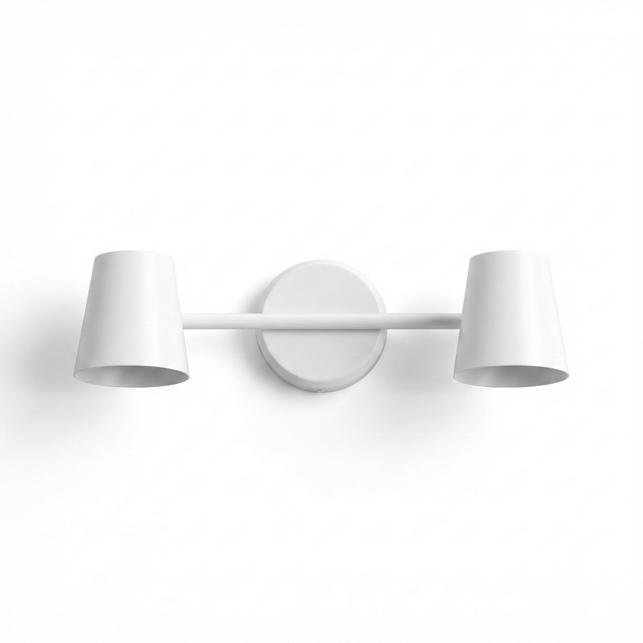Su acabado monocromático y su diseño arquitectónico lo convierten en la pieza ideal para situar sobre espejos de baño, cabeceras de cama dobles o para iluminar pasillos de forma jerarquizada. Al ser una luminaria de doble foco, permite cubrir una superficie mayor con una luz suave y dirigida, aportando orden visual y una sensación de amplitud a cualquier ambiente contemporáneo.