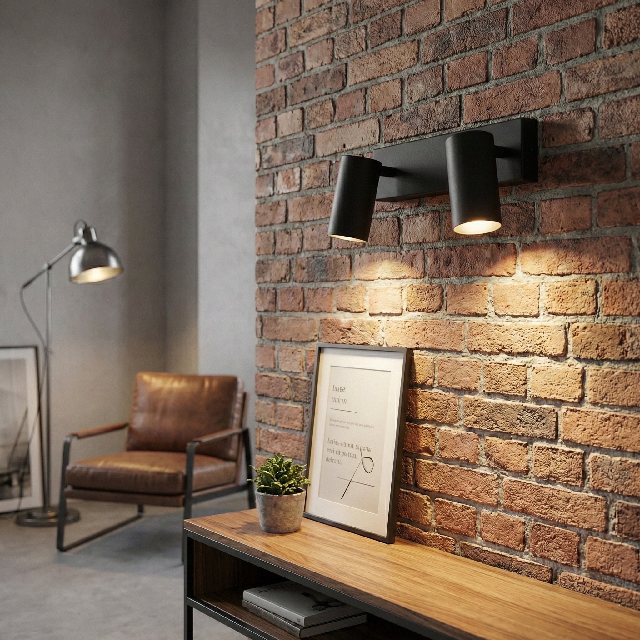 Cada cabezal posee un sistema de rotación independiente que permite dirigir la luz hacia puntos específicos, lo que la hace perfecta para jerarquizar objetos decorativos, iluminar espejos o funcionar como luz de apoyo en pasillos y zonas de trabajo. Su estética despojada y funcional se integra sin fisuras en interiores de estilo industrial, moderno o técnico.