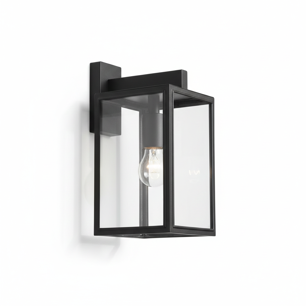 El Aplique “Urban Box” es la combinación perfecta de sobriedad y transparencia para la iluminación de exteriores. Este modelo importado presenta una estructura de marco abierto en acabado negro mate que encierra paneles de vidrio templado transparente, permitiendo que la luz se proyecte de forma total y sin obstrucciones.