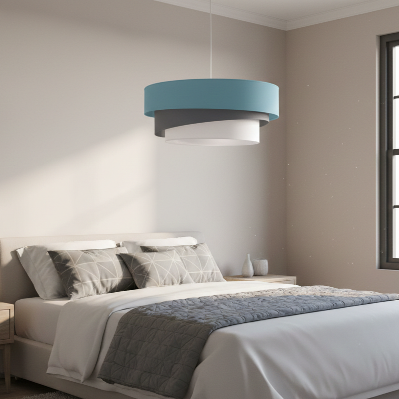 El Colgante “Aura Asimétrica Tricolor” es una pieza de diseño vanguardista que rompe con la linealidad tradicional para aportar dinamismo a cualquier ambiente. Su estructura se compone de tres pantallas cilíndricas con cortes diagonales que crean un efecto de capas fluidas, combinando un nivel superior en azul acero, un centro en gris grafito y una base en blanco puro para una difusión lumínica óptima. Es la luminaria ideal para protagonizar comedores modernos, oficinas creativas o livings que busquen un punto focal contemporáneo con identidad artesanal.