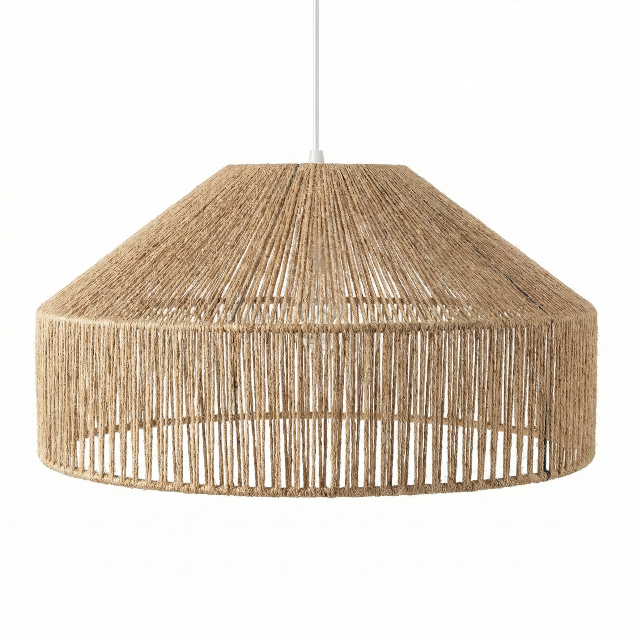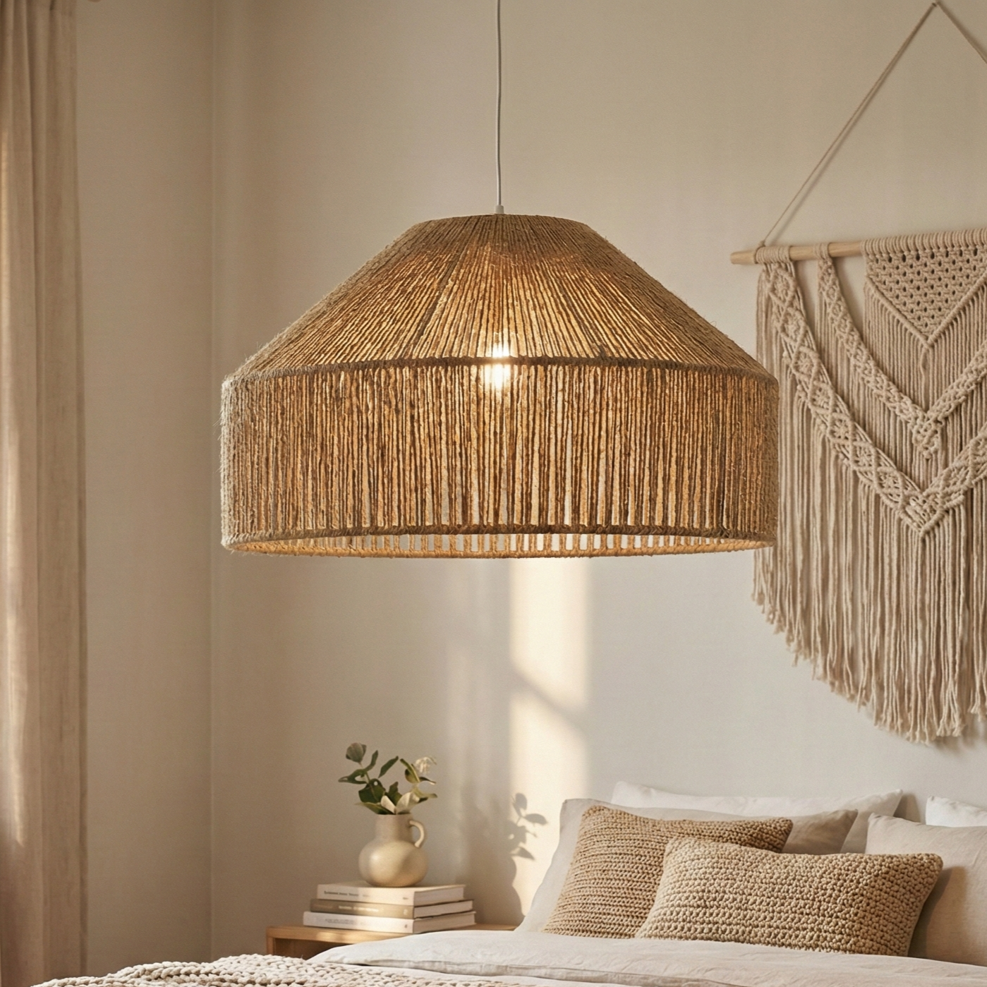 Encordado Manual: Cada lámpara es revestida hebra por hebra, asegurando una terminación artesanal única y una trama visualmente relajante.