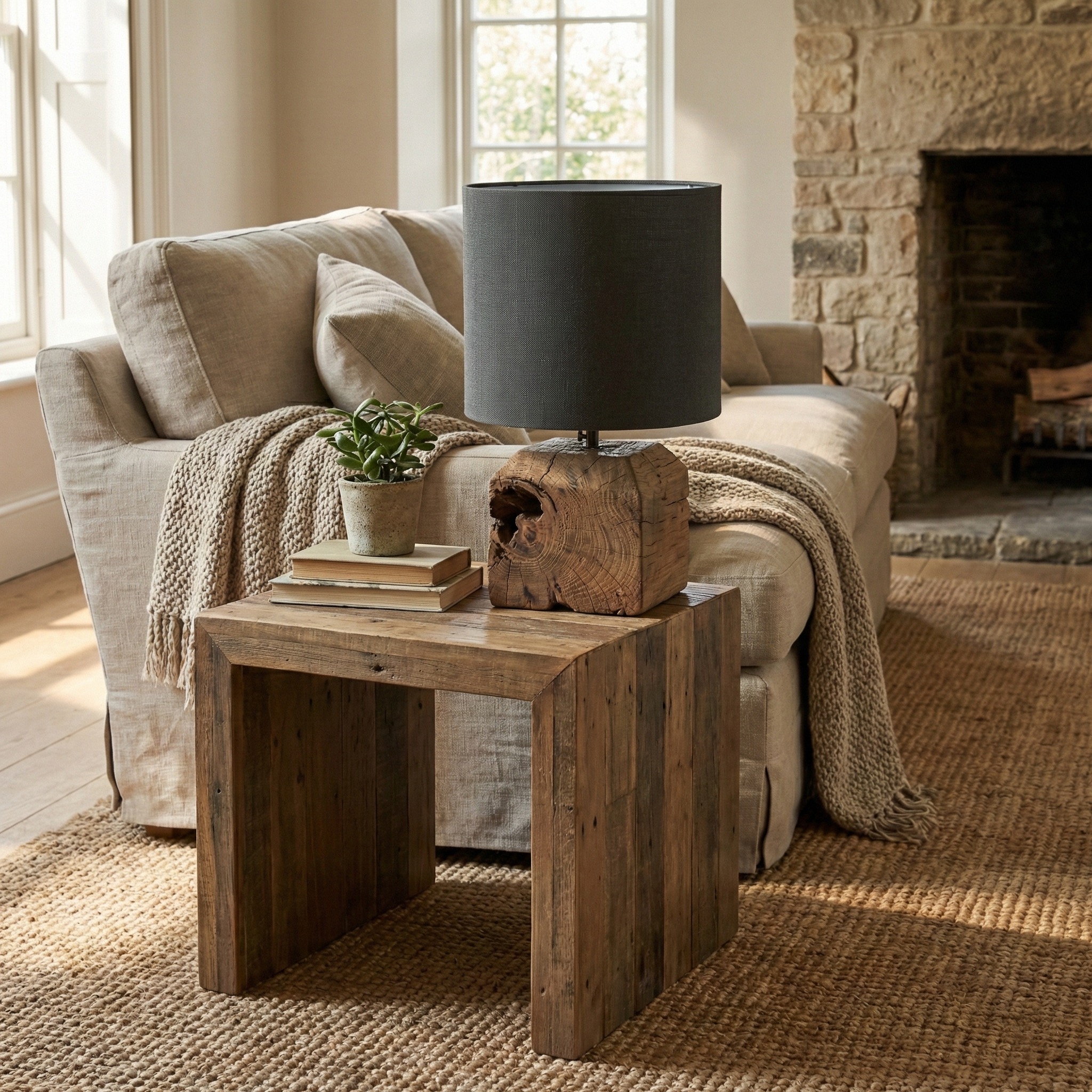 La Lámpara “Nativo Raw” es una pieza de diseño que celebra la belleza de lo imperfecto y lo auténtico. Su base es un bloque macizo de madera recuperada, conservando las grietas, nudos y texturas originales que hacen de cada lámpara un objeto irrepetible.