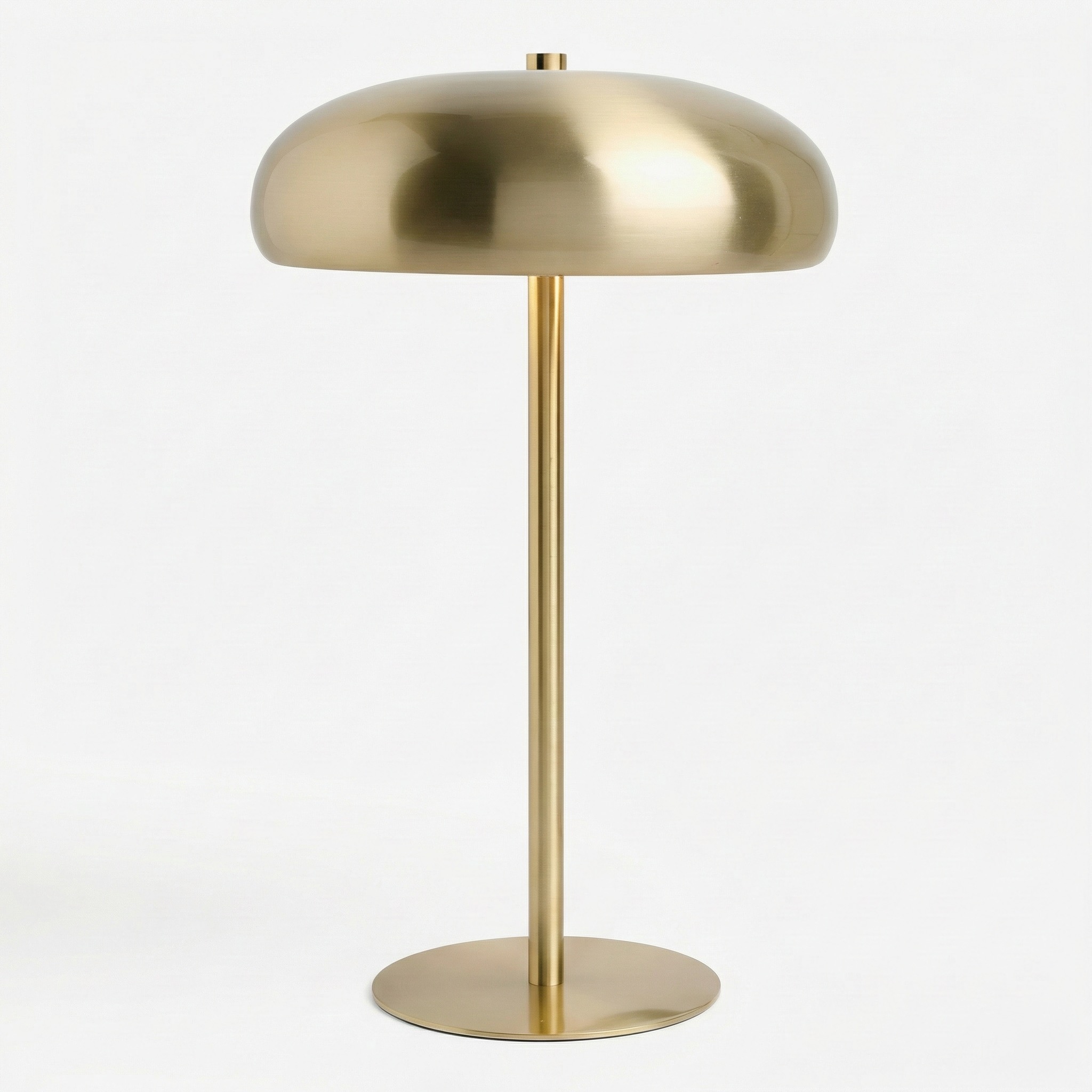 Su cúpula semiesférica de gran formato actúa como un difusor perfecto, ocultando la fuente de luz para proyectar un resplandor ambiental suave y envolvente hacia la base. Es una pieza diseñada para quienes buscan un objeto de lujo que equilibre la nostalgia del diseño de los años 70 con la pulcritud del minimalismo contemporáneo, siendo ideal para jerarquizar escritorios, aparadores o mesas de luz principales.
