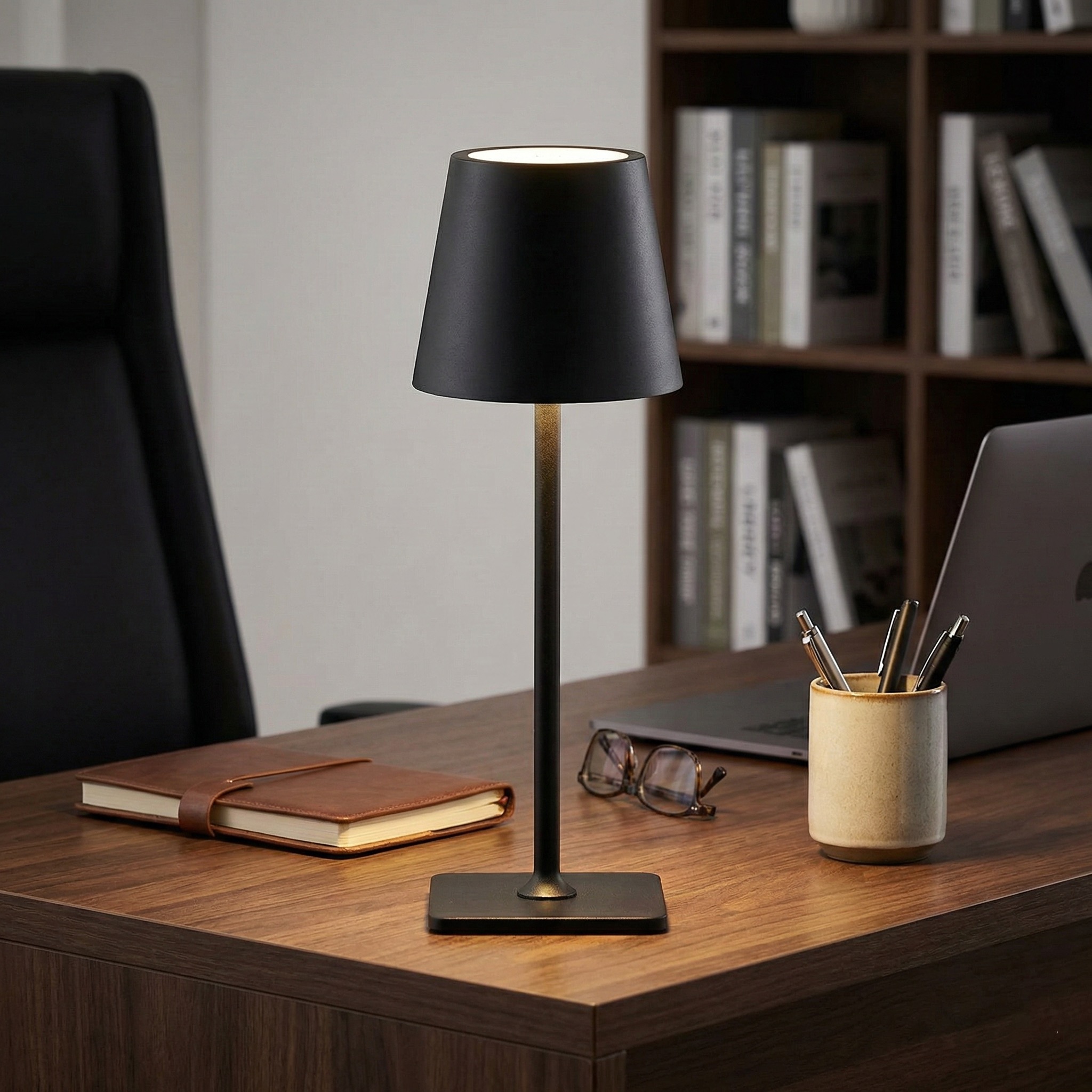 La Lámpara de Mesa “Noxis” es la solución definitiva para quienes buscan iluminación de alta calidad sin las limitaciones de los cables. Su diseño compacto y esbelto, fabricado íntegramente en metal con acabado negro mate, aporta una elegancia arquitectónica a cualquier superficie, desde mesas de luz hasta mesas de exterior en terrazas o restaurantes.