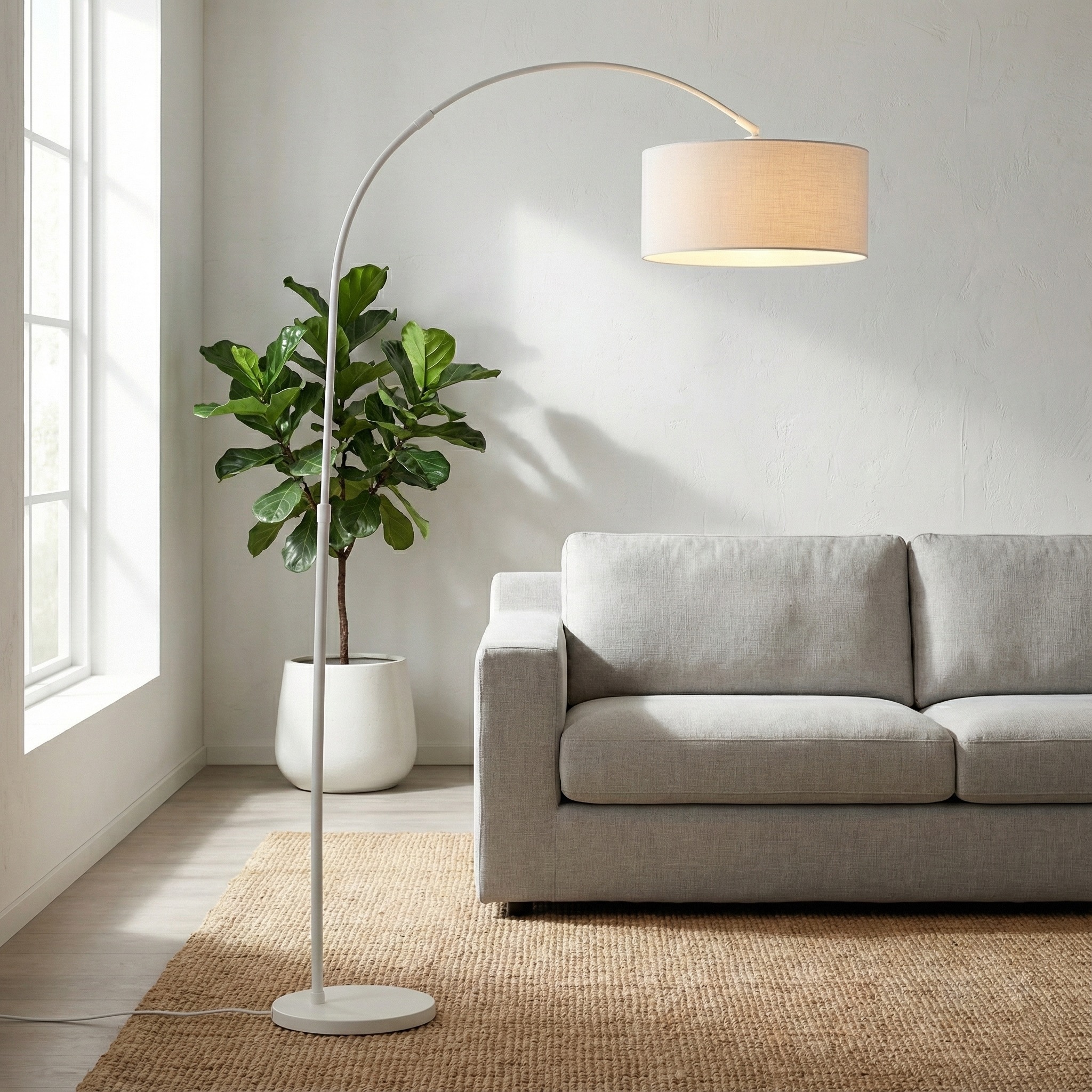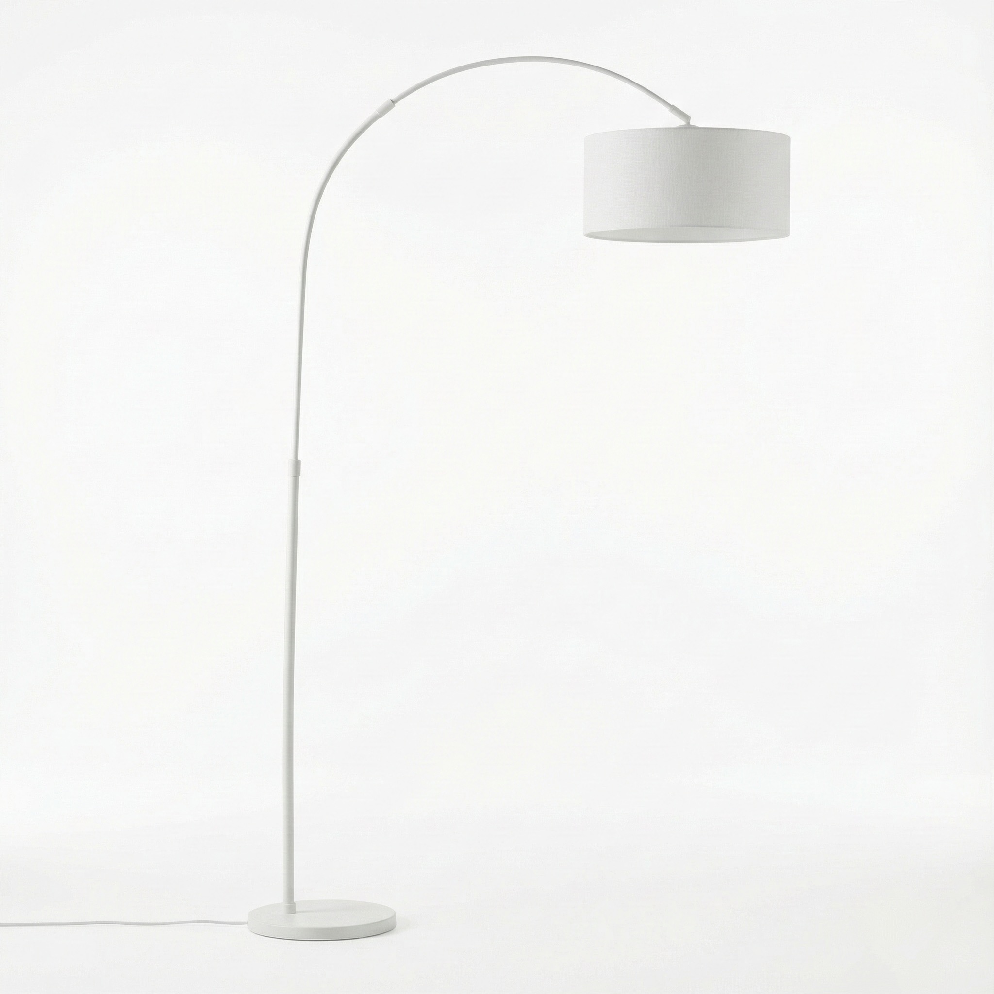 Con un acabado “monocromático” en blanco puro, esta lámpara se integra con naturalidad en ambientes nórdicos, minimalistas o contemporáneos. Su pantalla cilíndrica de tela blanca suaviza la luz, creando una atmósfera envolvente y equilibrada que aporta una sensación de amplitud y limpieza visual a cualquier salón.