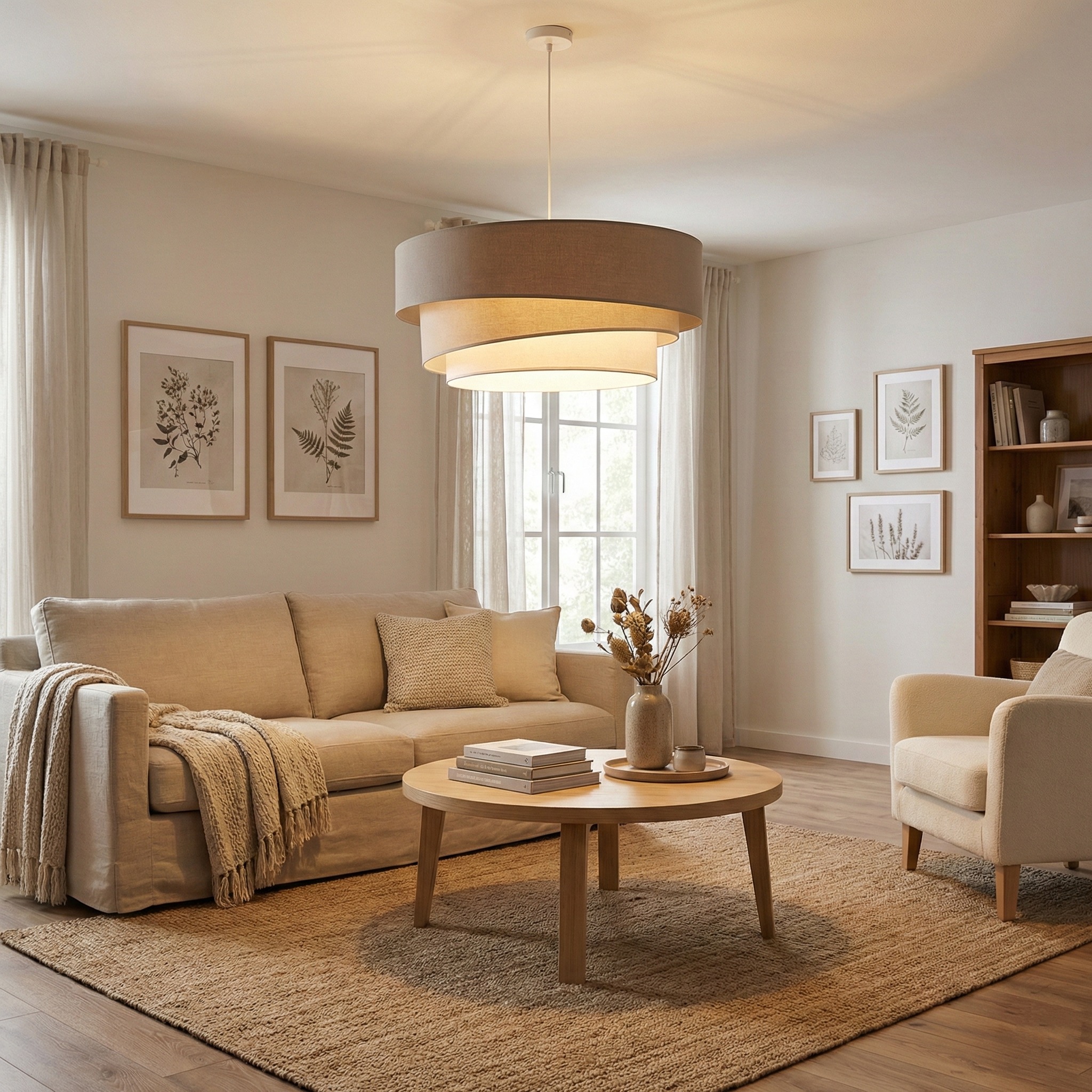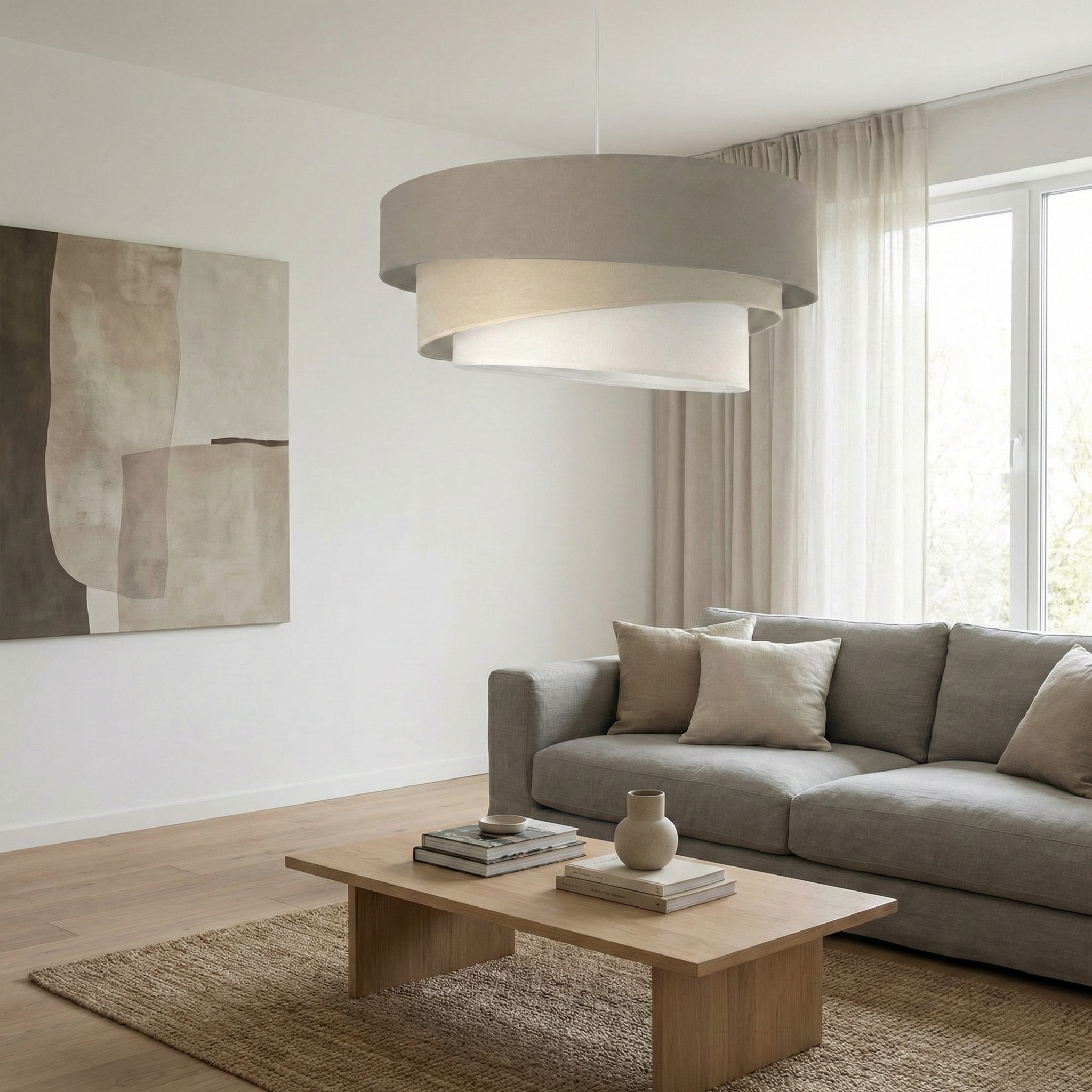 El Colgante “Nórdica Layers Mocca” es una pieza de diseño arquitectónico que utiliza la superposición de planos para esculpir la luz de manera elegante. Fabricada artesanalmente, esta luminaria presenta tres pantallas circulares de diámetros decrecientes en una transición tonal que va desde un visón profundo superior, pasando por un beige cálido, hasta un blanco puro en su base. Su diseño permite que la luz se filtre suavemente entre las capas, creando una iluminación ambiental rica y acogedora, perfecta para comedores modernos o dormitorios que buscan un centro de atención sereno y equilibrado.