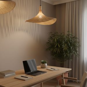 Lampara de pie de madera colgante