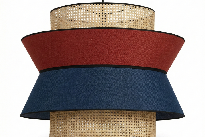 El Colgante «Bora Rejilla Terracota» es la síntesis perfecta entre la frescura mediterránea y el diseño contemporáneo. Su estructura destaca por una banda central de rattan legítimo en tejido de rejilla, flanqueada por dos pantallas cónicas en un vibrante tono terracota que proyectan una luz cálida y acogedora. Es la pieza ideal para quienes buscan transformar un comedor, una isla de cocina o un dormitorio en un refugio de serenidad con un fuerte acento decorativo de materiales naturales.