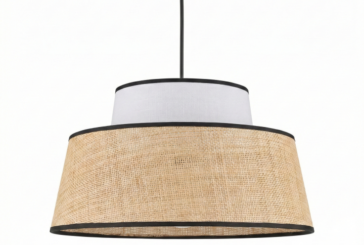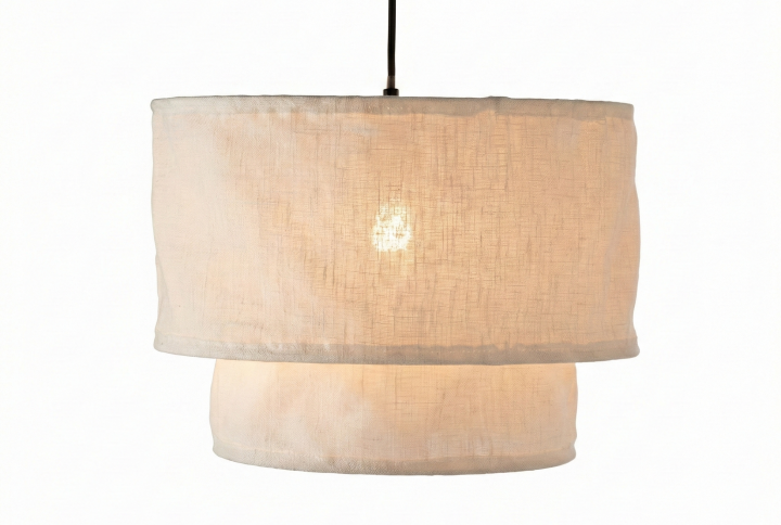 El Colgante «Niveo Tiered Canvas» es la definición de elegancia silenciosa. Su diseño se basa en la superposición de dos pantallas cónicas de tela de algodón de alta densidad, donde la sección superior abraza sutilmente a la inferior, creando un juego de sombras y volúmenes arquitectónicos. De una sobriedad absoluta, esta luminaria es perfecta para espacios que buscan una iluminación general difusa y una presencia estética limpia, ideal para comedores modernos, estudios minimalistas o dormitorios principales.