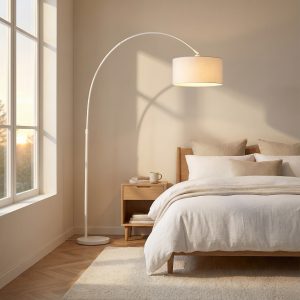 • Ambiente Acogedor: La pantalla de tela difunde la luz de manera suave, creando un ambiente perfecto para la relajación y el confort.